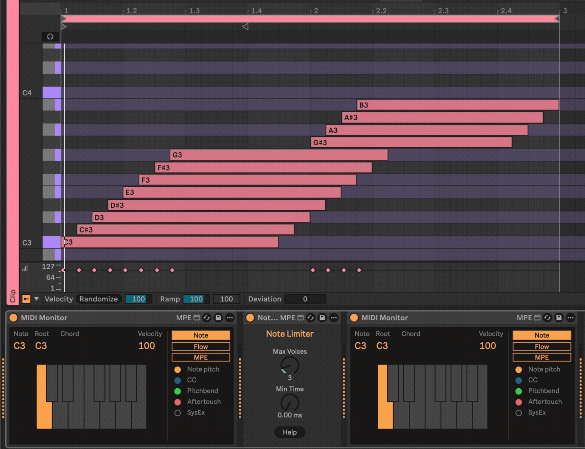 Download the newest release or clone this repository, and drag the NoteLimiter.amxd device into a track in Ableton Live.